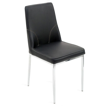 Silla tapizada en imitación piel, con base de madera color nogal.