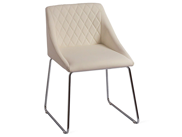 Silla tapizada en imitación piel y base de metal cromado.
