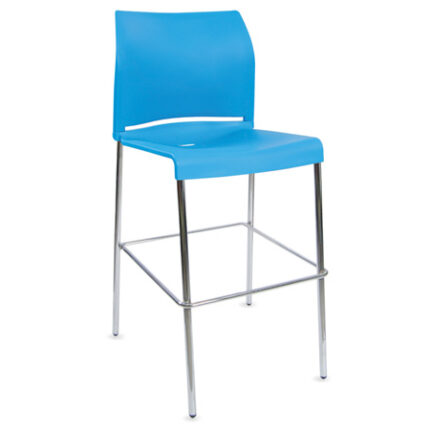 Banco asiento de plástico con base hidráulica en metal cromada.