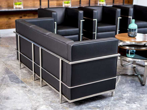 Sus patas son de metal, Sofa Fabricado en Cuero Ecologico