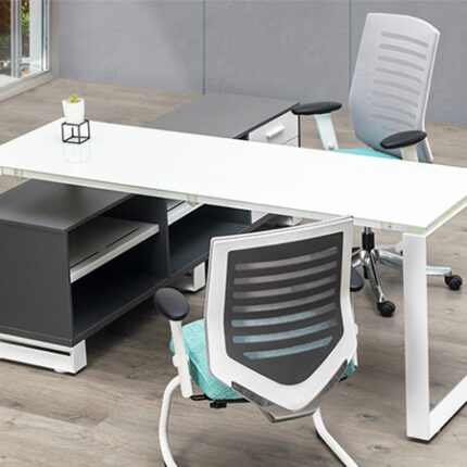 Incluye Credenza. Con jaladeras rectas en aluminio mate.